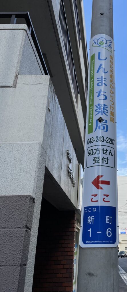 しんまち薬局への道案内に電柱広告を開始しました。近くを通ったら見てみてください。